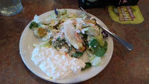 By my observations this is a place where people are much more interested in the QUANTITY of food they eat and not the quality. It is not an overstatement that many brands of frozen pizza will taste equal to or better than what they serve. The salad bar fixings were limited to inexpensive options; iceberg lettuce but no romaine or dark leafy varieties, salad dressings laden with corn syrup, cherry tomatoes picked too early, orange shavings which pass as real cheese. Few patrons were eating anything from the salad bar. The pizza and salad bar are both terrible but there are several other reasons you might feel sick to your stomach. The in-your-face, 5-foot square "Christian Music" display at the cashier and the posters which conflate cowboys and active military personal crossed the line. I began looking around for anti-abortion, pro-gun and anti-gay literature but perhaps I missed that? Half the folks eating in this place looked tired from carrying around an extra fifty to one-hundred pounds of body fat and some of them were not old enough to have a drivers license. This is not an exaggeration. Most were dining on the fried chicken which other reviews raved about but I avoided. Dare I say that even McDonalds, Wendys and Burger King offer more healthy choices and better tasting food. But alas, they dont offer all-you-can-eat pizza or deep fried options do they?