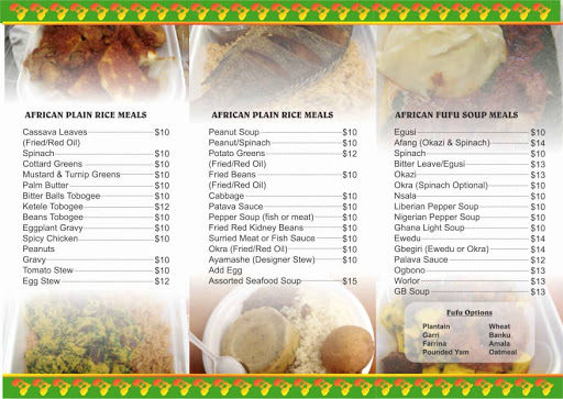 Lots of African food to choose from their menu. I love this Restaurant