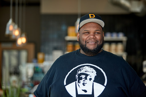 This is a Black owned eatery services amazing smoothies and sandwiches. The roasted chicken sandwich is delicious. I love the atmosphere and its a beautiful thing to support Black businesses.