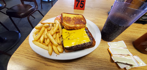 Good skillet fried steak Steak with baked potato and a very basic salad or soup. No frills just good basic food for a reasonable price. The Gyros and the Sandwiches are also good but skip the desserts, pies are so so commercial and the baklava was disappointing, instead of being fluffy and gooey it was hard and glued to the plate. The decor (or lack of) is so off putting, tables. chairs and silverware look to be the same ones I remember from 20 years ago. I know it is a budget diner but for a few dollars it could look presentable. In the end, you get what you paid for, $14 for a full steak dinner with dessert and soda so...