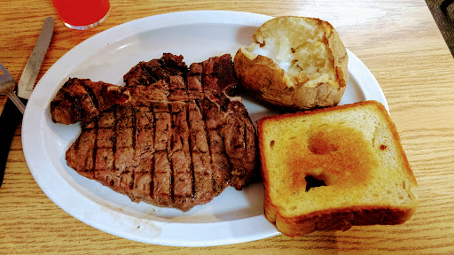 Great steaks! Cafeteria style service, no frills decor. Reasonable prices with daily specials.