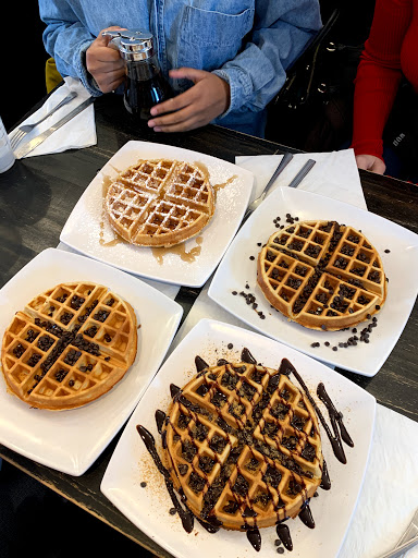 Long wait with no host to guide seating, which was needed. Waffles are very pricey, cheapest was $5.50 and that was totally plain. They charge butter as a topping which is ludicrous what do you want me to eat a waffle with out butter ya bloody misers? Syrup is also another topping charge. Not being the CEO of a lucrative company that was all I could afford, but as plain as my waffle was it still took 30mn to be served. When it was, the butter was refrigerated and could not be spread upon my long awaited waffle. Oh and the black coffee part? They didnt even have a dark roast. Just overpriced fancy things that are half milk and a weak light roast. 0/10 waffle enthusiasts recommend. Next time I want black coffee and waffles I will stay at home.