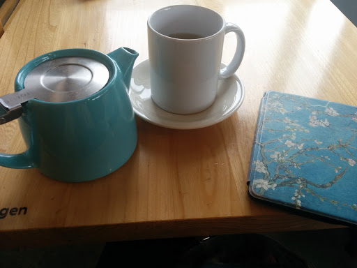 More of a diner restaurant atmosphere, but with coffee shop functionality. Brightly lit, open and roomy. You could sit with friends over coffee, have a nice healthy meal, or chill solo with a laptop and coffee for the day. The food seems really natural/healthy, and the bakery items are divine. They have the best chocolate eclairs! Staff is always friendly. You can get, well, butter to go. Lol. Bakery items by the box as well, and they sell a few small gift like things- mugs and bags of TeaSource loose leaf tea. Now for the unfortunate part. The Wi-Fi is horrible. The worst of anyplace ive been. They lose 2 stars for the terrible Wi-FI. It seems like they are filtering bandwidth for popular social media websites like Facebook, Instagram and the app store. Every time Ive been in here, not one picture will load on Facebook. Instagram wont load. Also the Apple App store wont load. Other less mainstream sites load okay (though still slow) Maybe they need a new router. I dont know, but even a search of my web based outlook inbox took timed out. (Its instant on my phone) Sending an email took 2 minutes. In a day when one can get free decent WiFi almost anywhere, its odd that the WiFi here sucks so bad. I want to chill here more often, but am seriously considering changing my go-to spot to somewhere where I can actually use my laptop. So basically, 5 stars for food and service, 0 stars for internet cafe usability. Ill round up and give em 3 stars.
