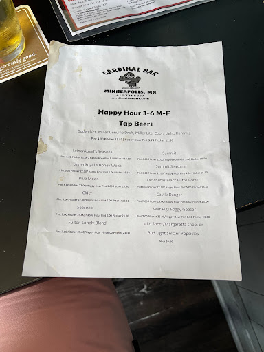 The Cardinal is one of my favorite places in the Twin Cities. It is a neighborhood bar with a slightly divey interior and a friendly welcoming attitude. The food is delicious and inexpensive. The staff (especially Steve!) are super friendly and make you feel like a regular after only a few trips back. Ive been going to trivia there every other week for a few months and love it. Definitely the place to hang out and drink with your friends.
