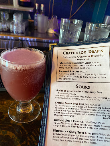 Small but very cool place. Aptly named. Grab some friends and head to the Chatterbox to gab, play classic board games (Candyland, anyone?) Or even get your NES on. Chicken Quesadillas are excellent, and the house ale goes perfectly with furniture that came from your grandparents garage sale. Theres even a few outdoor tables. The staff are super nice. Good place for smaller writers group meetups (over 8 people might be a challenge) and Ive been to book release events here.