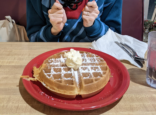 Not very impressed with the waffles. No fresh fruits, some kind of compote that was way too sweet :(