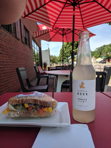 Great coffee, solid pastries, and beer. Modern euro-style ambience. Booths have outlets and lamps. Perfect for getting work done. And Hymies Records is a block away if one needs to take a break from working for some creative inspiration.