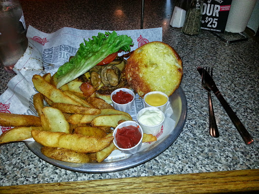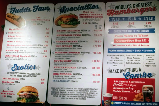 Ive only gone to Fuddruckers twice. The first time I would have given it 6 out of 5 stars. The food was perfect. The second time the food was not cooked as requested. Rare was well done. Fuddruckers is a burger joint with a bar. They have several options of burgers and other meats. You walk in and order your food, go find a seat and they will call you up when your meal is ready. There are several big screen TVs throughout the restaurant playing different sports channels and quieter corners where there are no TVs.