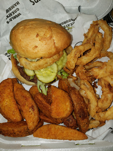 What a joke todays lunch was. We received one of those foods-ready-vibration things that should notify us of our food being ready. We proceeded to sit outside, waiting for the vibration. I decided to go inside to use the restroom, only to hear "Josh, your order is ready" - but the tone used was clear, this wasnt the first time "Josh" was called... Hence. Super cold food. Spent time in line to get my fixings, then finally made it to the table, only to realize they forgot the cheese for the cheeseburger. Back inside i went... While the other food sat getting colder and colder. They tossed a piece of cheese on it while looking at me like i was an idiot. Finally, time to take a bite. I remember this place used to have great food. Obviously something has happened since, because it was maybe the worst food Ive eaten in years. The burger sucked, the fries were so-so and the onion rings, if thats what you wanna call them, were pathetic.