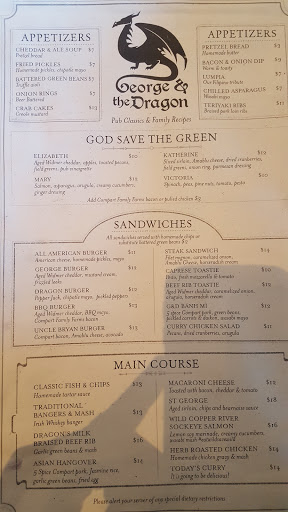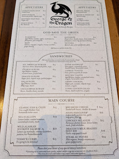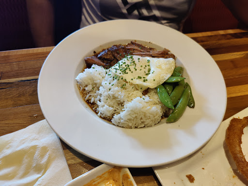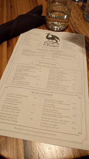 Quite a drive to get here for me and you should get here early if you dislike 1-2 block walks. Great atmosphere and was busy during the time I went in around 6 pm, of course. I had called ahead for reservations and when I got there it was only about a 5 minute wait. I ordered the asian hangover and it came out within 10-15 minutes. I had forgotten that I am just not really into pork so it was not very appetizing to me. It comes with pulled pork in a sauce, fried green beans, jasmine rice topped with an egg. The pork was salty to me. I felt it was a little over drenched in I think soy sauce or some kind of sauce. Green beans were fine although a little oily and I think my dish had an overdue green bean in it as it tasted very funny. The jasmine rice and egg was my favorite..and personally, I feel anyone can make that at home. My server, Sara was helpful with food suggestions but it took me awhile to get her attention to get my check as it was kind of busy. Overall, I was really disappointed in what I ordered after reading all the great reviews via Yelp and Google. Let me mention one good ending though. I did not realize the owner, Fred had greeted/seated me as I came in and he even knew my name on the reservation list without me telling him. Very unexpected! Anyways, I did not know he was the owner until after my meal when I was leaving and read his name on his shirt (I read about him via a Yelp review) as he thanked me on my way out. He was very friendly and welcoming the whole time. I will be willing to give this restaurant another try when I have time to stop by because of this experience. Gave an extra star because of that also. Well, until next time, George & the Dragon! :)
