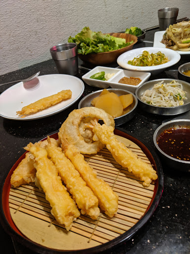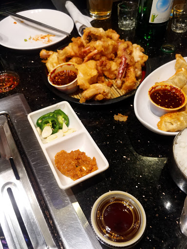 The food is overly priced and theres nothing special about it. The service was horrible, our waiter never came back to check on us. it seems like they were short staff so she was busy. we had to ask this other lady who may have been the manager to get us some water and refill on our side dishes. we ordered four items off the grill at an average of $20 per item, pork belly (4long pieces) beef bulgoi (4-6 thinly sliced pieces) veggies (two things of onion rings, four jumbo mushrooms, 4 squash slices and a couple pieces of red pepper) Hoban special Kalabi (4 long peices) for appetizers we ordered the calamari and hot wings. the calamari was horrible. no seasoning on it super oily and plain, not worth $$. wings was ok nothing special. then we ordered soup, kimchi hot pot. (which was probably the only thing I really enjoyed. the side dishes were normal. that was it and our bill came to $160. for the amount of food and lack of customer service, its overly priced. the little mom and pops Korean places are still so much better even without the grill part. youll get authentic food at a more reasonable price. this is a one time for me, probably will never go back. its so overrated.
