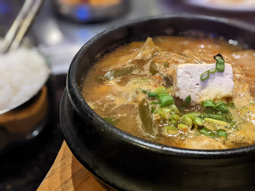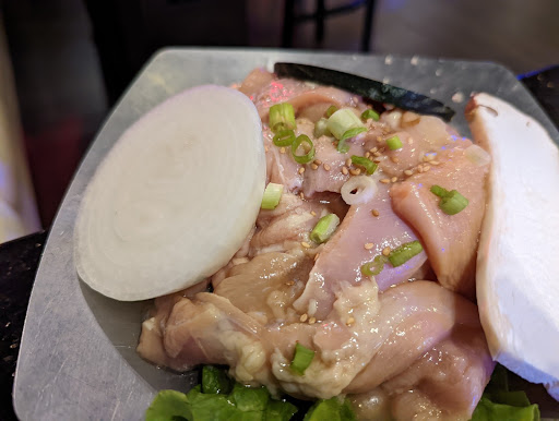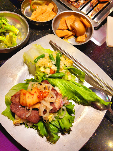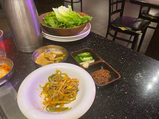 FOOD: Moved here from California so Ill try to be fair on rating their bbq and service. Their food tends to be more on the sweeter side in marinade. For 1 order of Wang Galbi (Long rib) and 1 order of Black Pork Belly, I felt it was priced on the higher scale from a portion perspective. We also ordered the Seafood Korean Pancake or Pajeon. If youve never had this before, then this will suffice but I thought it was battered up with not as much/enough seafood that Im used to. We tried the YukHwe or Raw beef with egg aka Steak tartare. The crisp pear slices help clean up the heaviness of the yolk and balance the sweetness. SERVICE: I think theres a lot of room for improvement. Better communication from and between the servers. Its obvious that the servers are overwhelmed during and thankfully the owner or manager stepped in but it was disappointing to see certain sides or accompanying dishes not make it out on the table the first time. I think sesame oil with salt and pepper should always be placed on table. If there are 2 guests at the table, offering 2 sets of garlic/jalepeno peppers/pepperbean paste is given. To place 1 and expect it to last between 2 guests is being a bit too frugal IMO. CONCLUSION: This is probably the priciest Korean bbq for 2, Ive ever seen. Its not a weekly place I would go to eat considering the value and service. I would recommend they improve their service to alleviate the burden of their high prices upon their customers.