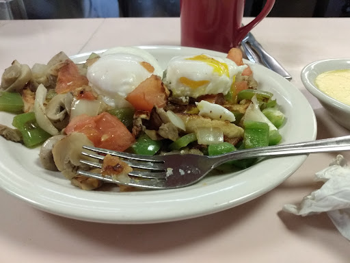 Excellent little diner. My husband had the chicken fried steak (frozen, but very good, with a tasty gravy) and I had french toast with eggs and hash browns. The hash browns were nice and crispy and the french toast was perfectly seasoned. Someone in the diner ordered the Eggs Benedict and that looked very good. This was our first visit and we will definitely go back.