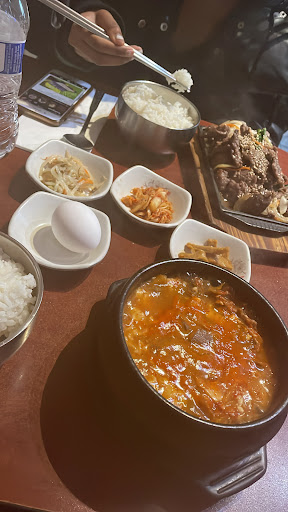 Its a wonderful little restaurant that specializes in soondubu jjigae. My favorite is the dumpling one. They give you a raw egg to crack into the soup and the soup is so hot itll cook the egg. The soup will stay hot until the end of your meal. This is not a place to grab a quick bite unless you are Frozone.