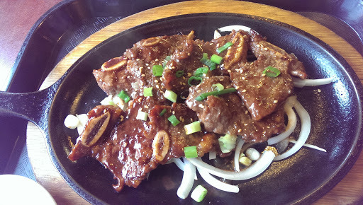 Ordered the galbi (#5) and liked the marinade, but the meat was a bit tough. Still good though. Comes with a bowl of rice and five sides (bean sprouts, tofu strips, marinated potato, pickled seaweed, kimchee), all of which I enjoyed, except the kimchee which I didnt try because I cant handle spice. XD When you walk in, you have to go to the back of the store to order (the menu is on the wall behind you when you face the cash register). Then you snag a table while you wait for them to make your food. When your food is ready you hear a chime, and your number is displayed on the wall. When youre finished, you bring your tray back to the front and put it on a shelf.