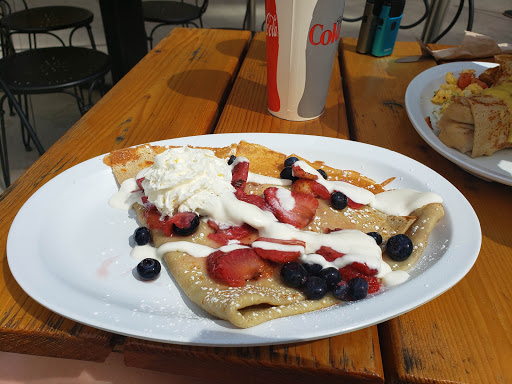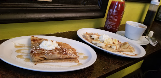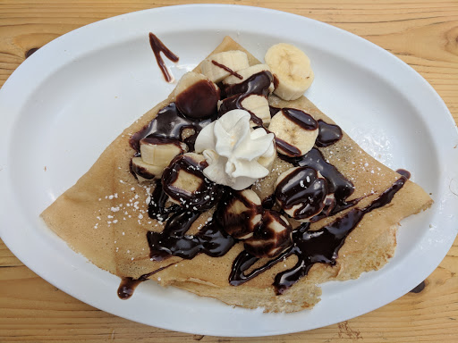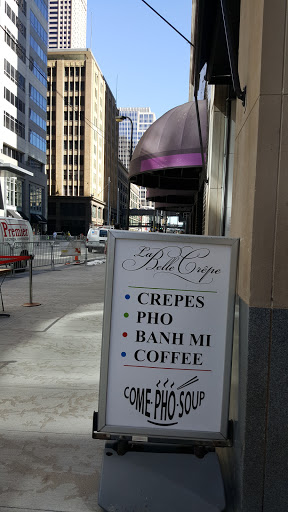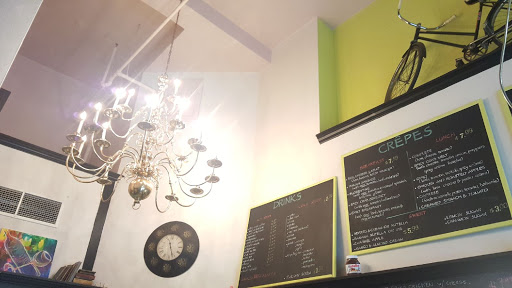 I frequent La Belle Crepe. So much so, that they recognize me every time I come in and ask me how Im doing. It definitely keeps me coming back. It feels like seeing old friends. ATMOSPHERE: Its a cool family-run type of a restaurant with quirky art and a mirror covered in foreign currency. The way its set up makes you feel like youre at a European café. FOOD: Their crêpes are a-mazing and their Ginger Chicken Bahn Mi is Sgreat. I love this place so much and its no secret!