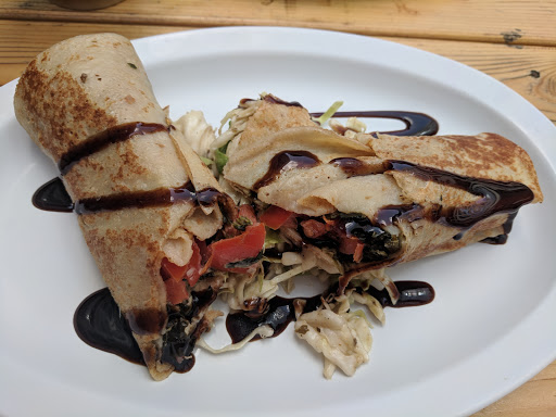 Consistently the worst crepes I have had to date. I gave it a couple tries thinking maybe they had a bad day, but they have been equally disappointing each time! If i wanted a dried up pancake that they wanted to call a crepe i would have dug to the bottom of my trash can for my left over breakfast yesterday. The sauce that they drizzle on is good, but there is only enough to drag 2 bites through it before your daily ration is out. All fillings (chicken, artichoke, etc..) are usually over cooked and incredibly dry. I had noted on my last visit that all their chicken is pre cooked, and likely sitting there for hours. I wasnt surprised when i needed a glass of water just to wet my pallet and choke it down. Too much time spent making it look pretty and too little time making it taste good. my advice- give your $8 to a homeless guy down the block. at least he might get a good meal with the money you would have otherwise thrown out!