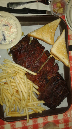 I took my family to this restaurant because I was told that they had the "best ribs" that I would ever taste. We were all very hungry and we all ordered the Rack of ribs. It was early Saturday evening, no one in the joint but us, the waitress took our order, we figured it would take at least 15-20 minutes. 3 minutes after taking our order here come the ribs. Red Flag right! Oh my God. A shark couldnt pull the meat from the bone. All the sauce in the world wouldnt help this dog food. I could go on and on, but if you dont believe me I dare you to see for yourself. We paid our bill $30 a rack TIMES 6 in family for a total of $180. Being from out of town we left quietly. WE walked approx 1 block from this restaurant and my wife and kids said Dad - why didnt you tell the manager? I said that I didnt want to create a seen. But that if you want me to go back that I would. SO, led by my wife ( who never complains) we returned to speak to the manager. What a rude individual we ran into. This guy has dirty blonde hair with glasses, not that this matters, but I want to make it a point so that if you ever go there you will see for yourself. I told him that this place was suppose to have the best ribs and that they were definately the worst ribs that I had ever eaten and his response was sorry you didnt like them but tough luck buddy. I said what his response was you heard me. I said thats fine but that when I get home that I would be writing to a review about this experience. He said that he didnt personally care. So my response was ok. And that is why I am writing to warn customers about this place. Please do yourself a favor, read and believe the responses below because it is the truth. GO anywhere but here. Do yourself a favor and stay away from this hole. UUUUGGGGGGHHHHHHH DOG FOOD!!!!!!!
