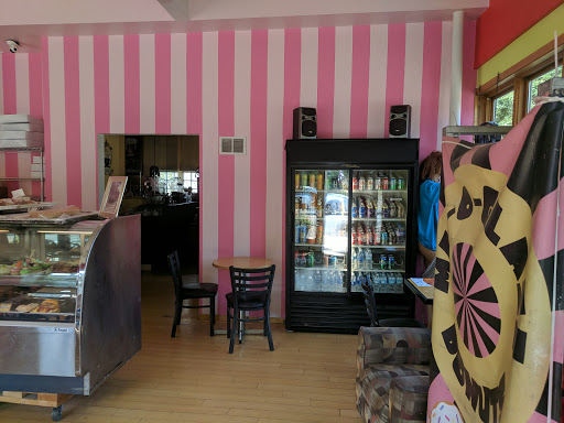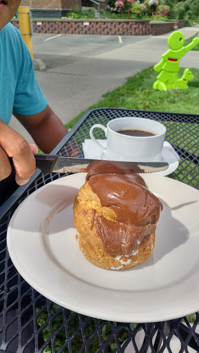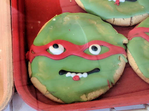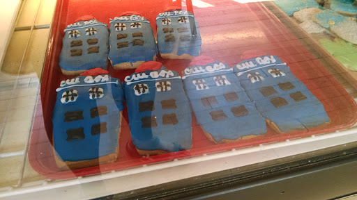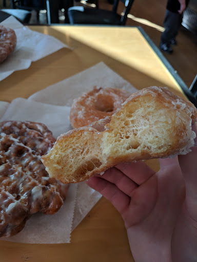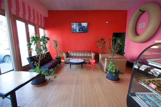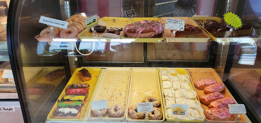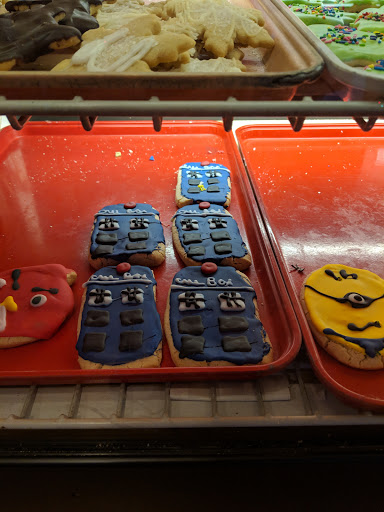 We came by after trying a competitor down the street and wanting to be able to really say, "Place X is better". At the end of the day, this place was awesome a did a better job in the realm of baked sweets than some of the other spots in the area. We started with a sample of a donut hole which both I and my 2.5 year old appreciated. We decided that two donuts and two cookies were in order. We began with the peanut butter-banana-chocolate face donut. This may be the best donut since the beginning of time and may be the calorie dense item Ive ever seen. The face on the outside a good start, but the inside filled with the aforementioned combo makes for what shall henceforth be known as bakery bliss. Seriously, this was incredible and may be a superfood - the sort of thing that would solve hunger problems if distributed widely. We then procured a cherry bomb and as its name suggested, it is indeed a delicious weapon. The filling was good, but the real magic was occurring in the actual donut - it was straight up amazing! Soft, sweet and delicious - its how I imagine a diabetic cloud tastes on a warm day. We also indulged in a couple angry bird cookies as they were colorful and a 2.5 year old does love colorful carbs! We made the mistake of keeping them until the following day at which time the fluffy cookie had been sucked dry of moisture and was rather hard. Moral of this story is that you should eat these the same day. They have complimentary coffee for all patrons and plenty of seating at which to enjoy your baked deliciousness. Based on the reviews my expectations were not super high, but after coming by, Im hooked! This spot, along with another down the way, make for quite the intimidating and delicious bakers mile! Worth checking out and them coming back to again.
