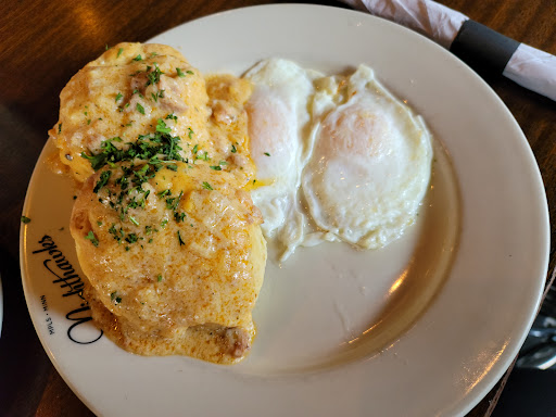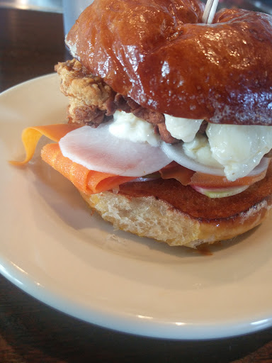I had a great brunch here yesterday. Got to sample a number of different items from the menu and they were all quite good. The service was quick and responsive. I have mixed feeling about the chicken and waffles: the chicken itself is excellent, but the Eggo waffles it is served with dont offer much other than ironic value. This chicken deserves a better waffle. The full order of Chicken & Waffles is enough for 2 (or more). Another concern is the fried egg that came undercooked with soft, clear whites. A very good place overall.