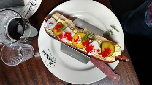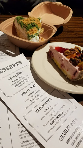 So far Ive tried the corned beef sandwich (which was amazing) and one of the hot dogs (equally amazing). Both are very large, which seems to be a theme here. Nice big filling portions. We tried the fish fry tonight, which was okay. Gigantic portions, and the fish inside was good, but I found the breading to be a little thick and mushy inside. Their fries are awesome, in fact they seem like the same fries Lowbrow has. Banana cream pie is delicious, but I didnt really care for the gluten free white chocolate layered crust. Service and atmosphere are both excellent.