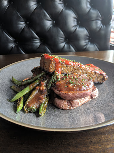 Quite a nice atmosphere. It feels modern, but with an 80s kick. It has LED lighting around the food bar area and booths surrounding that. I wouldnt say the burger is to diiiiiie for, but it is in the upper tier of quality of meat. The cheese adds something nice too. You could tell the quality of meat when yuio sink you teeth into it. The flavor tastes fresh - that mixed with the cheese makes it a buger that stick in my head and would make me go back. They also give you a healthy helping of fries which are pretty good in and of themselves. I would recommend it to anyone looking for a very very solid burger. They have different styles of burgers too, that would fit the appetite of someone who craves the "bizarre" type of sandwiches. Visited June 2016