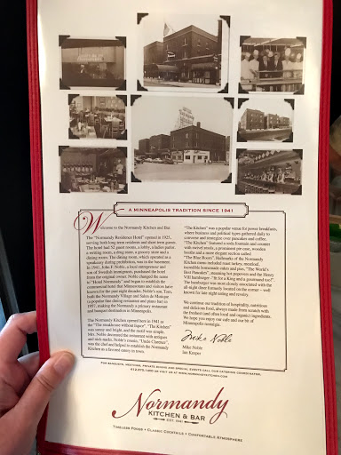 In Minneapolis for business and ended up eating here twice, enjoyed both times. There was some remodeling in progress, not sure exactly what was being done. The decor was very old school, almost to the point of being kitschy, but it wasn’t really a distraction. We had both lunch and dinner, and both were excellent. Sandwiches were generous and tasty. Dinner entrees were reasonably priced, and the fried cheese curds were evidently awesome. Good wine and beer list, service was easy, quick and friendly. Try it, you’ll like it!