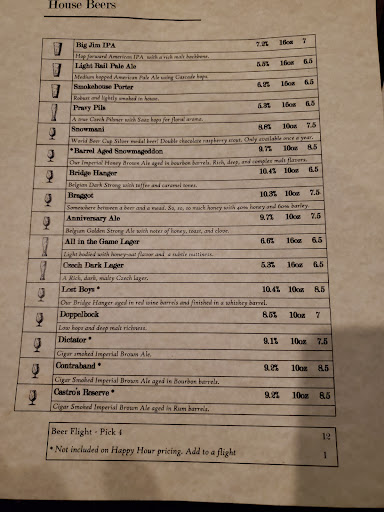 Just stopped in for beers. A good selection, and you should be able to find a brew for everyone. The outside seating area is nice. Bar is also good seating. A handful of TVs to catch whatever game is on. The Big Jim IPA is solid. The Imperial was touted as Mega-hoppy, though good, it fell a little short of expectations. The Castro Reserve was quite good. Very rich. Their sour was solid. Want to go back for food sometime. I hear it is good bar food. Will update more after next visit.