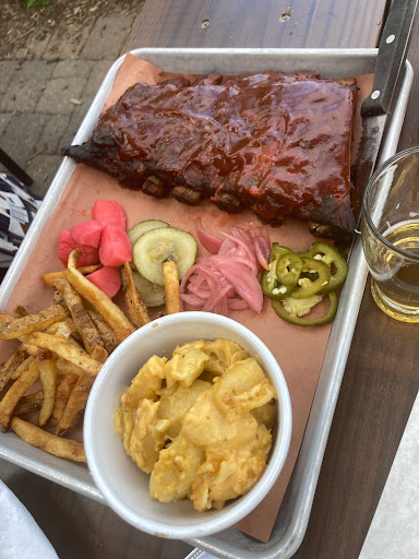 Beer is fantastic, wish the food was as good. theres potential with the smoky meats they serve. Last night my wife had a burger ordered as medium well, but was served med-rare. otherwise she thought the burger was tasty (good, not great). My mom had the salmon wrap which she loved I had the porketta which again was good, not great. BBQ sauce was excellent (maybe a little too much on the vinegary side) but expected a little more from the pulled pork in taste and texture. In the past Ive tried the wings which were good but nothing too special, and the smoked platter which again was underwhelming. Overall, great place and amazing beer! but could use a little work on the food