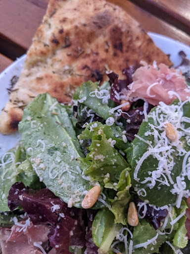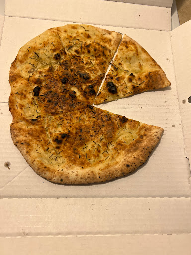 Delicious light pizza that doesnt leave you feeling weighed down like a lot of the food from other places. Everything is very fresh, the pizza is cooked in a large pizza oven where youre able to see it. Ive never had a bad experience here. Its a very relaxed place where you can enjoy some very yummy food!