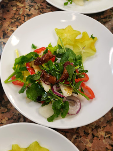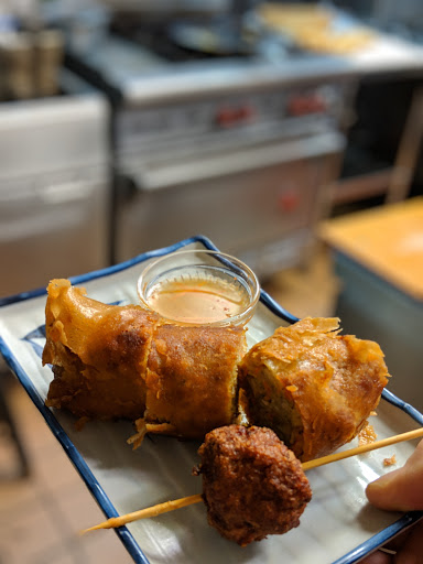 We went at 9pm on a Thursday evening. The portions are on the smaller end, but if you go during happy hour, its a steal. Ordered the following: dumplings --Great. mango salad -- Really good. Super spicy. papaya salad with egg roll -- Good. lemongrass chicken -- Pretty good. Not too much chicken vs. lots of vegetables. mint gin/cava/vanilla cocktail - Good. Tasted sweet, but felt strong, which is my favorite combination. Music and ambiance was good. Fish tank was big, clean and sexy. Diverse patrons racially and social economically, from suits at the bar to hipsters doing date night at the tables. Would like to return with a larger group and do some heavy plate sharing!