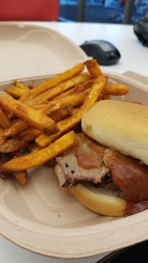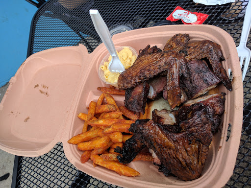 Nothing beats this barbecue. We absolutely love it in every way. The meat is smoked to the bone and moist, whether it was chicken wings or ribs. The fries were amazing the coleslaw wonderfully mustardy and Im not sure if my husband even took a breath when eating the beans. My husband had never had catfish before and was thrilled with how delicious it was. **Hint: call ahead so your order is ready as it takes about 15 minutes to prepare. And there are a few small tables outside, but pretty much a pick up and then go kind of a place. They accept credit cards. You are denying yourself the best food to pass your lips if you dont eat here at least once in your life!