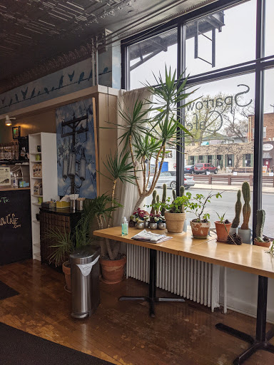 Delicious coffees, and many custom Sparrow Cafe drinks, with optional cafe treats from donut kabob with sprinkles to bacon donut or fresh scones, plus this cafe has an awesome atmosphere and beautiful local art floor to ceiling!