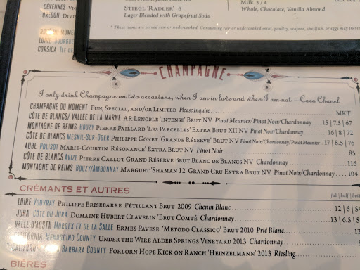 I really dont have far to go for a true French experience. You shall have these appetizer portions that are billed as entrees and minuscule wine and beer pours and you shall enjoy it. Only thing missing is an insulting wait staff. Really thought this owner pushes this with Tilia but when I pay a lot for lunch and have to go home and eat because I am famished!? Look fine dinning is one thing but this is an insult. Like I am saying if you want a slap in the face for over-priced food and and drink go here. The quality is good but not worth the cost. We go to London twice a year and I would not pay for this there. Hey last time I checked this was the mid-west?