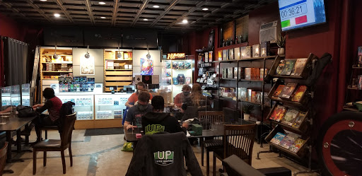 A coffee shop, inside a gaming store, is a fantastic idea! We love the under-water theme. And Manny (sp?) might be the most knowledgeable & pleasant barista Ive ever met. Terrific experience! Well be back.