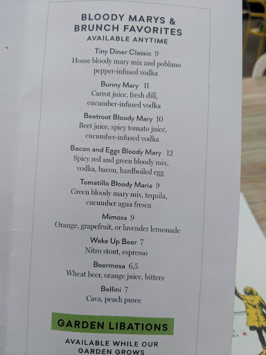 When I walked up to the restaurant I was excited because of the charm as well as the amazing aromas, however I was disappointed by the overall experience. Since I was a party of 1, I sat at the bar and the person manning the station was beyond overwhelmed and made sure to tell every employee that came to him how overwhelmed he was. He only had 3 groups of people that he was serving. Even if he was overwhelmed he shouldnt be complaining about it where customers can hear. Whenever he said something to me I could not understand what he was saying. That probably is because his back was turned to me whenever he spoke. The food came out in 5 minutes so I assumed it would be warm, however my hashbrowns and bacon were cold. Paying $5 for a side of bacon Id expect it to be warm. Id love to try Tiny Diner again because there is so much charm to the building but I wouldnt sit in the bar if he was there.