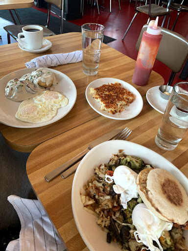 You know, the food is acceptable to below average. They certainly get points for trying and being creative. The highlight of the meal was a properly prepared lavander mimosa, which was perfectly balanced. Without that, I would have left two stars. I sampled a few things but got a biscuits and gravy main. I watched excitedly as they brought a grand looking biscuit to another table. But when mine showed up, I dont know... it mustve been gravy and grits cakes? And after tasting it, I wasnt sure that the recipe architect ever had real biscuits and gravy. Its trendy. If youre a basic foodie, then youll probably love this place. The food was just nothing spectacular.