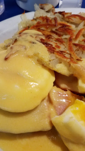 Me and a co-worker decided to try this today and I must say I was VERY disappointed. We both ordered the eggs benedict and I specifically asked that my English muffins be toasted brown and not soggy. So we get our food within a couple minutes and what a mess. Both of our hash browns are barely cooked, my english muffin isnt toasted at all, my eggs are hard instead of being runny like they should be for being poached. Our server took our order, brought our food and cashed us out otherwise we never saw him. Never asked how our food was, never refilled our waters, never brought straws. I will also say, we were there for a late lunch on a Friday so it wasnt even busy to where you would understand. I wont be going back.