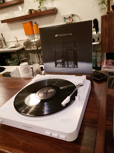 Wonderful environment and coffee drinks. The baristas are very helpful and welcoming. Great selection of music all in vinyl. I enjoy bringing a book and it would be an excellent place to bring homework or work. Latte and specialty drinks are superb, as are the different selection of coffee.