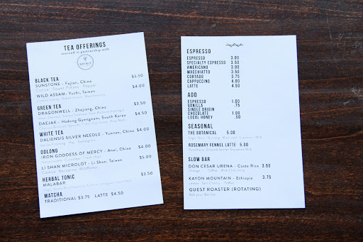 Wow. Everything is perfect! First off, fastest WiFi of any cafe I have visited. Download: 58 Mbps Upload: 12 Mbps They bring coffee and tea creations to the level of fine cocktail crafting. The ambience is clean, well designed, peaceful. The music on the record player is always tastefull. Only downside? Not enough seats. Get there before the lines out the door.