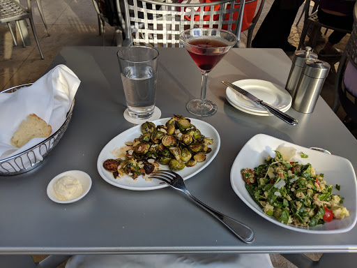 Started with roasted Brussels sprouts. Slight bitterness of the sprouts was offset by the light honey and almond glaze. Delicious. Wife had spinach fettuccine with chicken that was to die for. I first opted for the 6 oz. filet minon, but it was pretty bland and overcooked for the medium rare I ordered. Mentioned this to my server and she immediately suggested bringing out a different entre. I chose a wild salmon special of the day and was rewarded by a wonderfully seasoned fish, moist and tender, accompanied by a tasty red pepper risotto and grilled asparagus. It was delivered by the manager who did not quibble one bit about me sending back the filet. Great service, good food, and a lovely table out on the sidewalk made for a lovely experience.