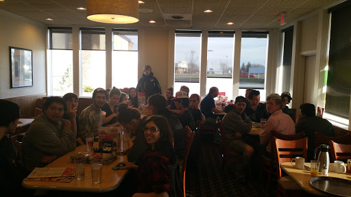 Service was terrible! I was with 2 kids I babysit for. I got there at 5pm on Monday night (11/ 7,) was seated & greeted promptly, we placed our order right away. 2 kid french toast, & an order or pancakes for myself. It took til 5: 25 to get our beverages!!! The server kept walking by, she said her manager would be out w//ur beverages, 10 min later..till nothing! I approached the manager, and she was careless about it. We didnt receive our food til 6: 15pm . These times are accurate, because Im a server! The restaurant was steady but not very busy. The people who sat across from us, was seated right after us. They were almost done eating by the time we got our beverages!!!! The only good thing about this visit, is the food was good!! Im understanding, because I work in this industry, but this is unacceptable!!!