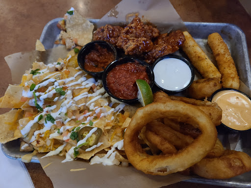Energetic atmosphere with a TV almost everywhere you look! Always get great service here and love the wide variety of sauce choices. I would recommend onion rings as an appetizer or the pretzels!