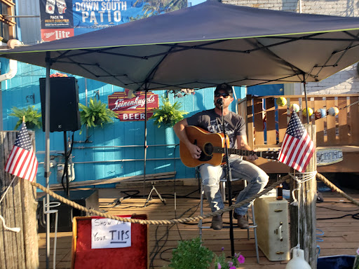 Fun place. Sweet backyard, tropical themed patio. Live music on a regular basis. Dont ever recall a cover charge when Ive been there. Great pizza! Reasonably priced drinks.