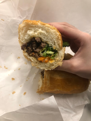 At first I was kind of put off by the decor and vibe of the restaurant since it wasnt very inviting and kind of reminding me of a warehouse with painted wall. The place could be updated to be a little more inviting. The food tells a different story. I ordered two of the banh mis and an order of the cream cheese wontons. The wontons are some of the best Ive had. The only flaw is that they are kind of light on the cream cheese. The bahn mi was great. The vegetables were very flavorful and fresh tasting. The grilled pork had amazing flavor and the seasoning was awesome. Overall I would be back for the sandwich alone.