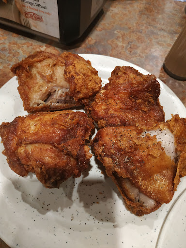I think Pizza Ranch is fairly well known for crappy pizza. I go there irregularly, but almost never eat the crappy pizza. The fried chicken on the other hand is very good. The other benefit is no waiting, theres always something ready to eat, even if they are temporarily out of fried chicken. Nice salad bar too.