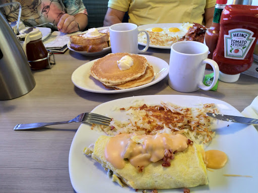 Greasy, overpriced food + annoying 80s music. I remember a time when Perkins was a pleasant, reasonably priced place to eat. Will not be returning.