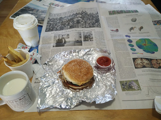 Meh. Noisy cramped atmosphere. Burgers are OK, but I dont care for the fries. They only have american cheese so you cant order a mushroom swiss burger. If you get a small burger and fries without a drink you can have lunch for under $9. Its more expensive that you might think.