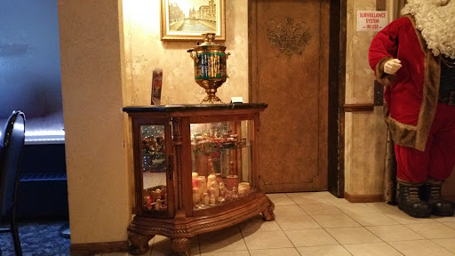 We made a reservation on a weeknight, hoping to sample some Russian food. In the entry way, a man was seated, sleeping and snoring, on a couch. Upstairs in the restaurant, a large banquet area was taped off, and a sign said "area closed." The only section that was open was a bar. No one appeared to be eating food. We left without trying the food. Not a nice ambience. Looks like a large banquet hall.
