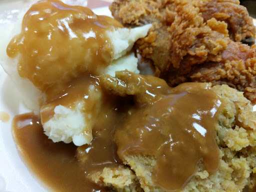 OMG, where do I begin? OK, My family went here for a quick lunch. It was 1:30 p.m. so we were just gonna grab some meals. We were pleasantly surprised to find that they had a buffet at a reasonable price, 22.50 for 2 adults and 1 child after tax. Unfortunately, we didnt realize that the "reasonable" price was likely due to low standard of food, and poor customer service. The popcorn chicken that I got for my 3 year old son to eat, I wouldnt feed to a stray dog, much less my boy. Dark meat doesnt describe that chicken, it was black and hard to the core. The peaches that I was also going to give my son were pale and did tiny. Oddest looking peaches Ive ever seen. They looked like theyve been in that can for years. I did let my boy eat them, but I felt very uneasy about it. The mac and cheese was completely watered down, and nothing like what you would expect to get if you ordered it as a side with a meal. The extra crispy chicken was hard as a rock, both the skin and the chicken underneath. It was moist once you crack through the thick rock-like shell. The other thing that really turned us off to this establishment was when I went to get some BBQ and honey from the employees at the counter because there were no condiments available on the buffet or anywhere near it, they told me that is was a .27 cent charge per item. At this point I was pretty irritated and we decided it was not worth it. I personally dont carry cash on me often, and I was not about to stand in the 10 minute line for a few condiments and another charge to my bank card. They really should let you know or have some sort of sign telling you this when you order the food so you know what to expect. These are items that they tend to give out freely at the drive-through at no charge, and if you ask for them, Im accustomed to being given so much that I am stocked for years to come. One thing I did find somewhat humorous was that there were actually signs posted at 2 places along the buffet line apologizing for the recent price increase due to patrons stuffing their pockets and purses with food items from the buffet because there may have been a "misunderstanding" in the agreement that it was an "all you can eat HERE buffet." Right, Im sure thats why people were lining their pockets with fried chicken, because of some "misunderstanding." Just shows who the typical patron is in this establishment. Overall I was quite turned off to this KFC, and KFC in general for a long time, and I really love KFC. It will be a long time, if ever, before I feel like I can go to another KFC. Good luck if you decide to give it a try.
